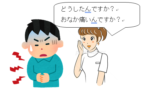 例1 どうしたんですか?―――おなかが痛(いた)いんです。