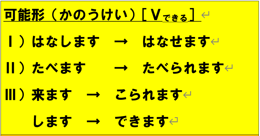 Vできる(動詞(どうし)可能形(かのうけい))