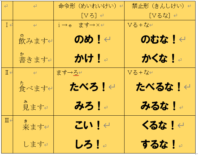 動詞命令形[Vろ]・動詞禁止形[Vるな]