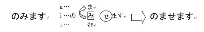 例 先生 → わたし・立ちます ⇒ 先生はわたしを立たせました。